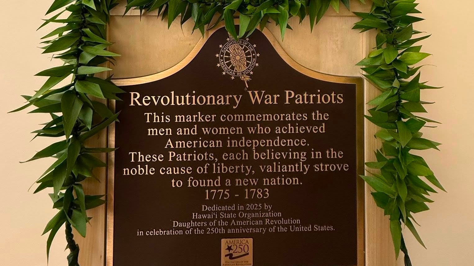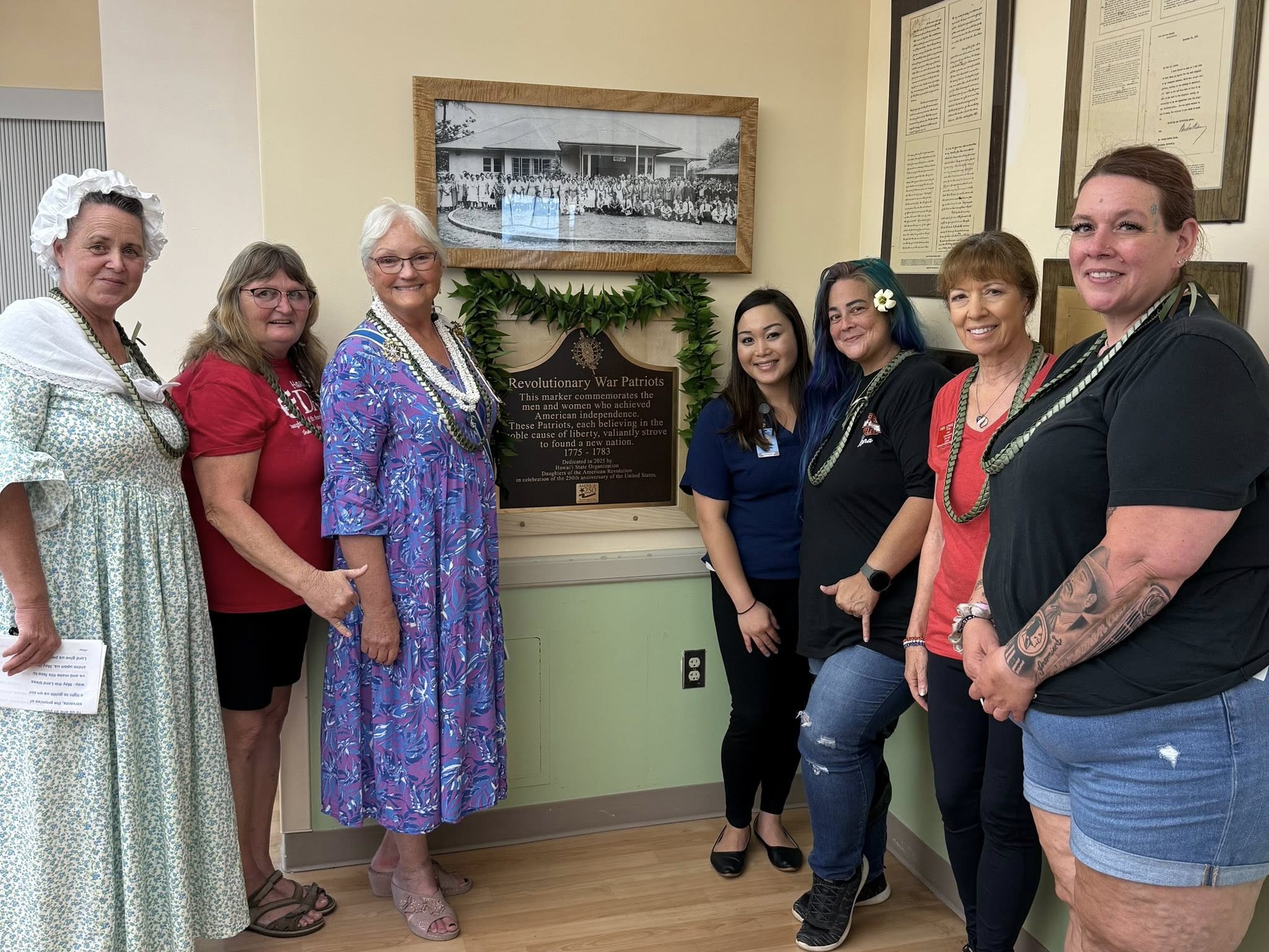 Representatives from the Hawai‘i State Organization National Society Daughters of the American Revolution (NSDAR) gathered at Yukio Okutsu State Veterans Home to dedicate a Revolutionary War Patriots Memorial Marker. The ceremony honored the enduring legacy of the men and women who contributed to America’s fight for independence. The newly installed marker, now prominently displayed in the facility’s Activities Center, serves as a lasting tribute to their sacrifice and as an educational symbol for future generations.