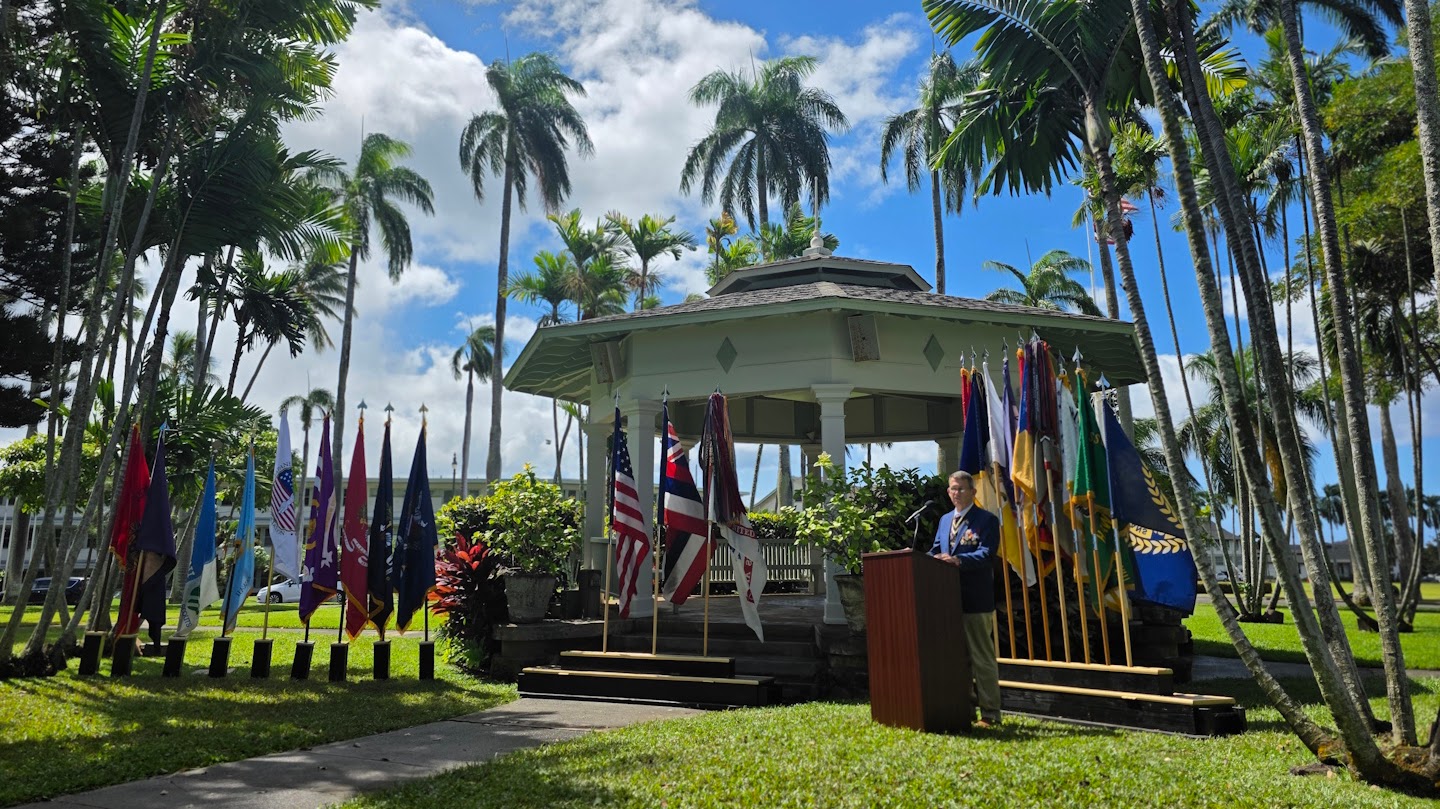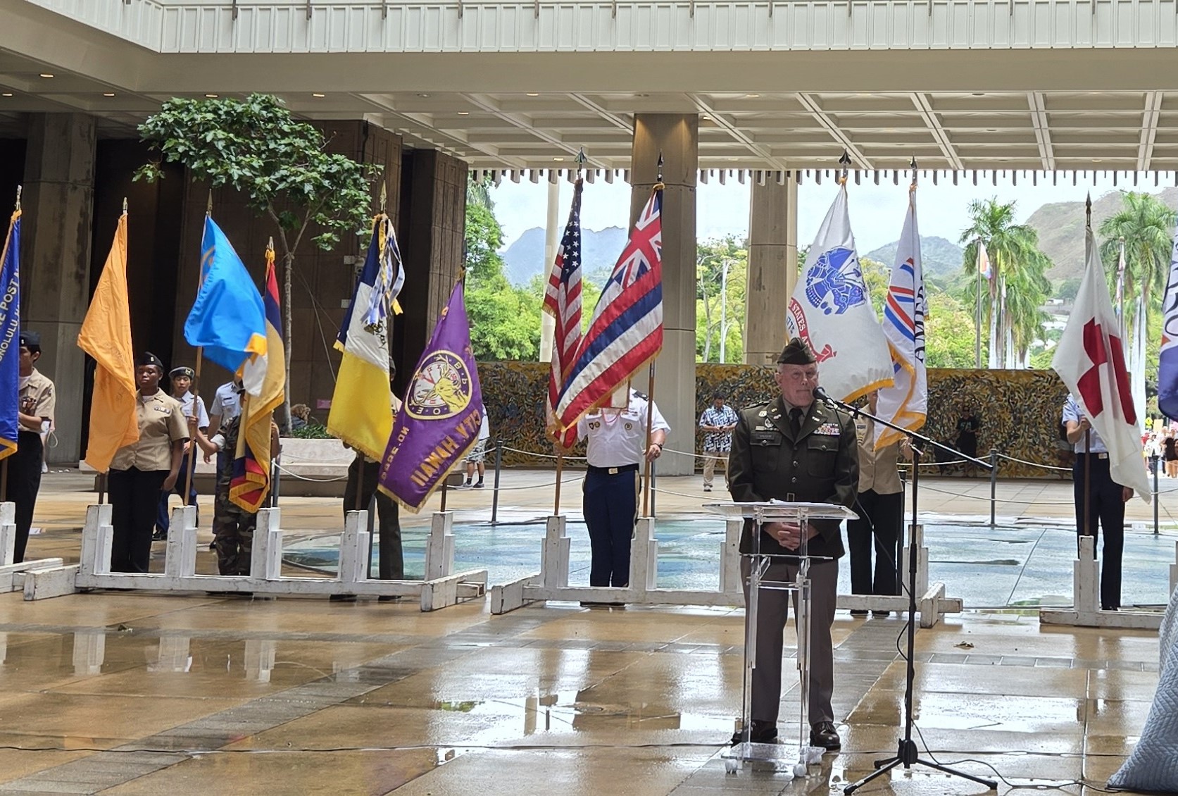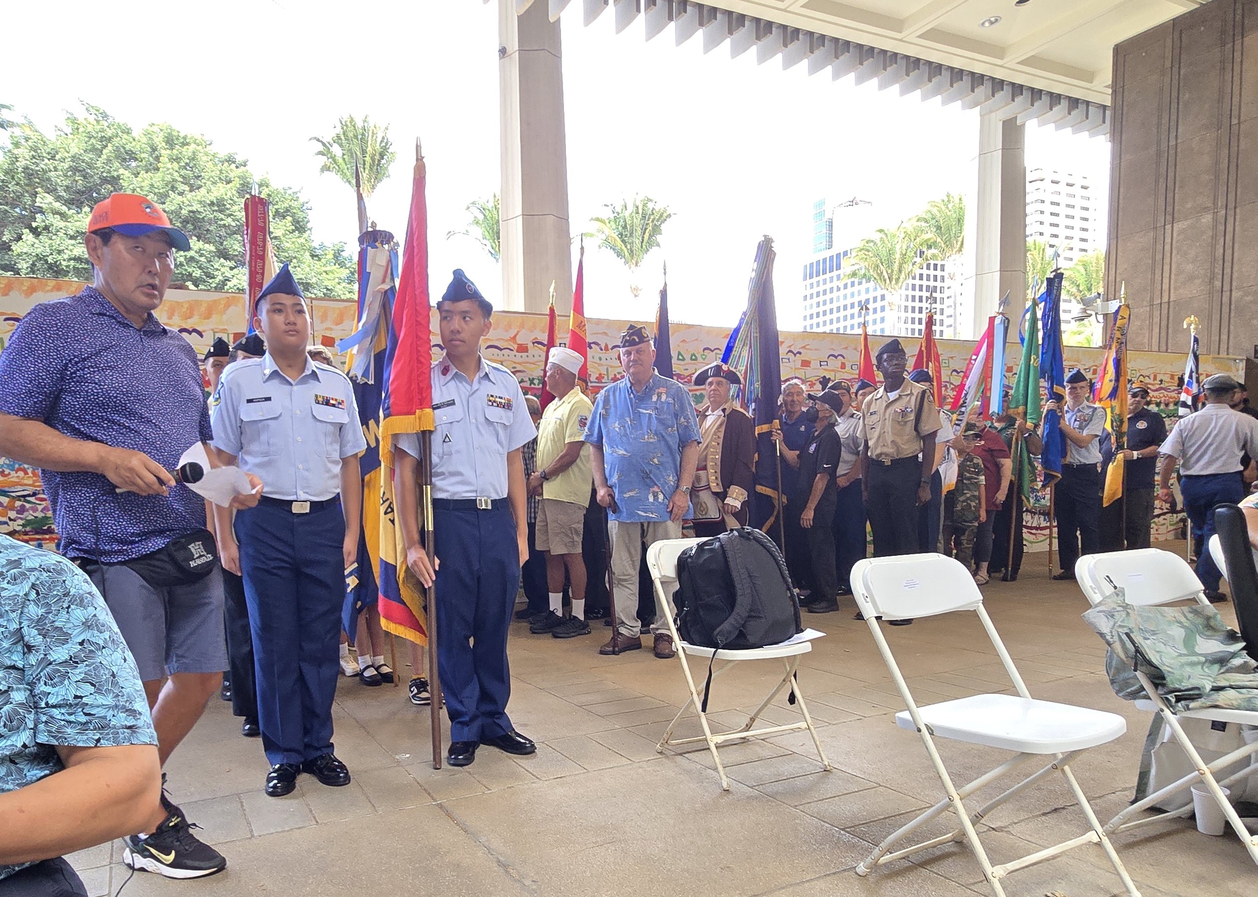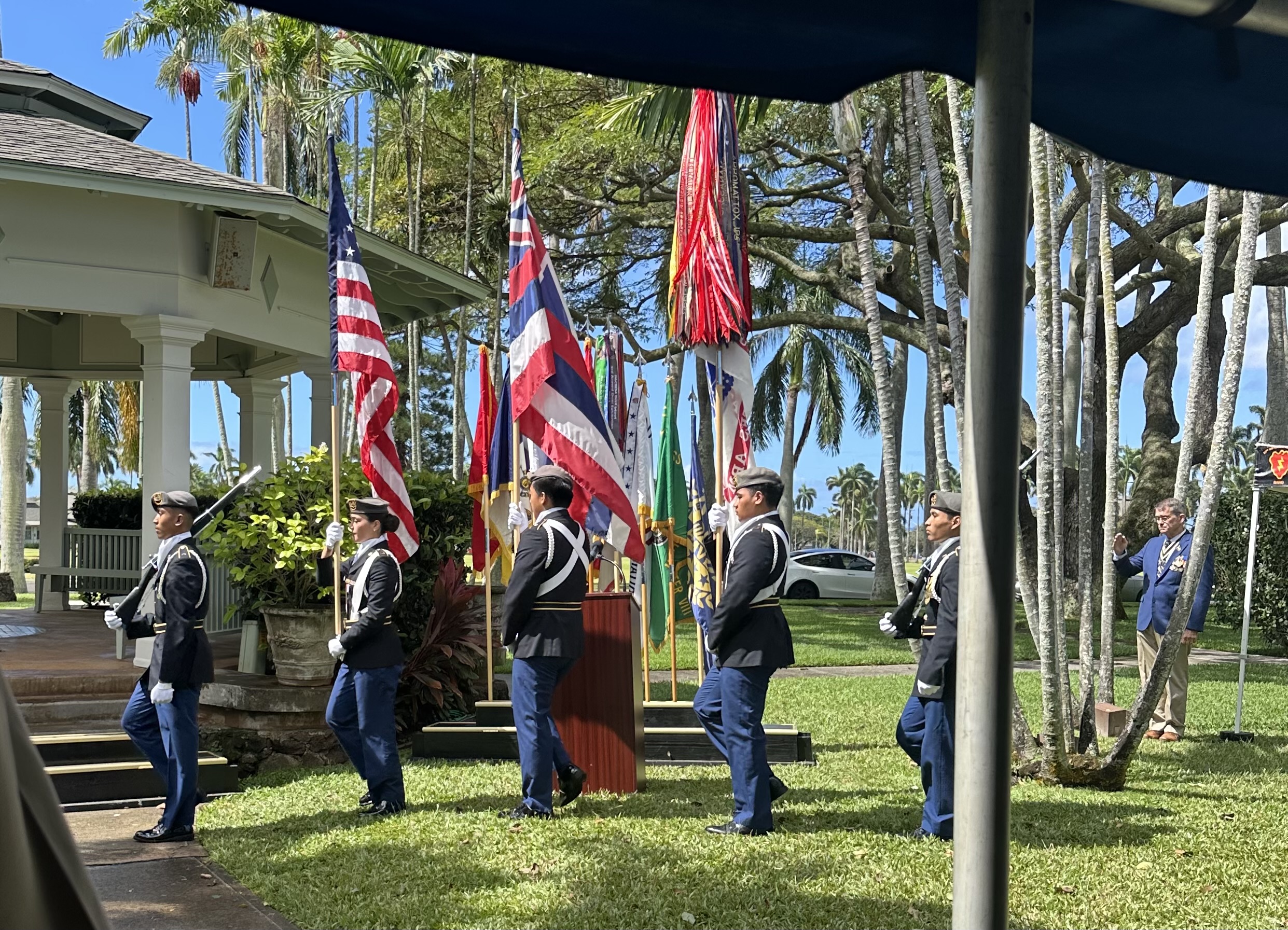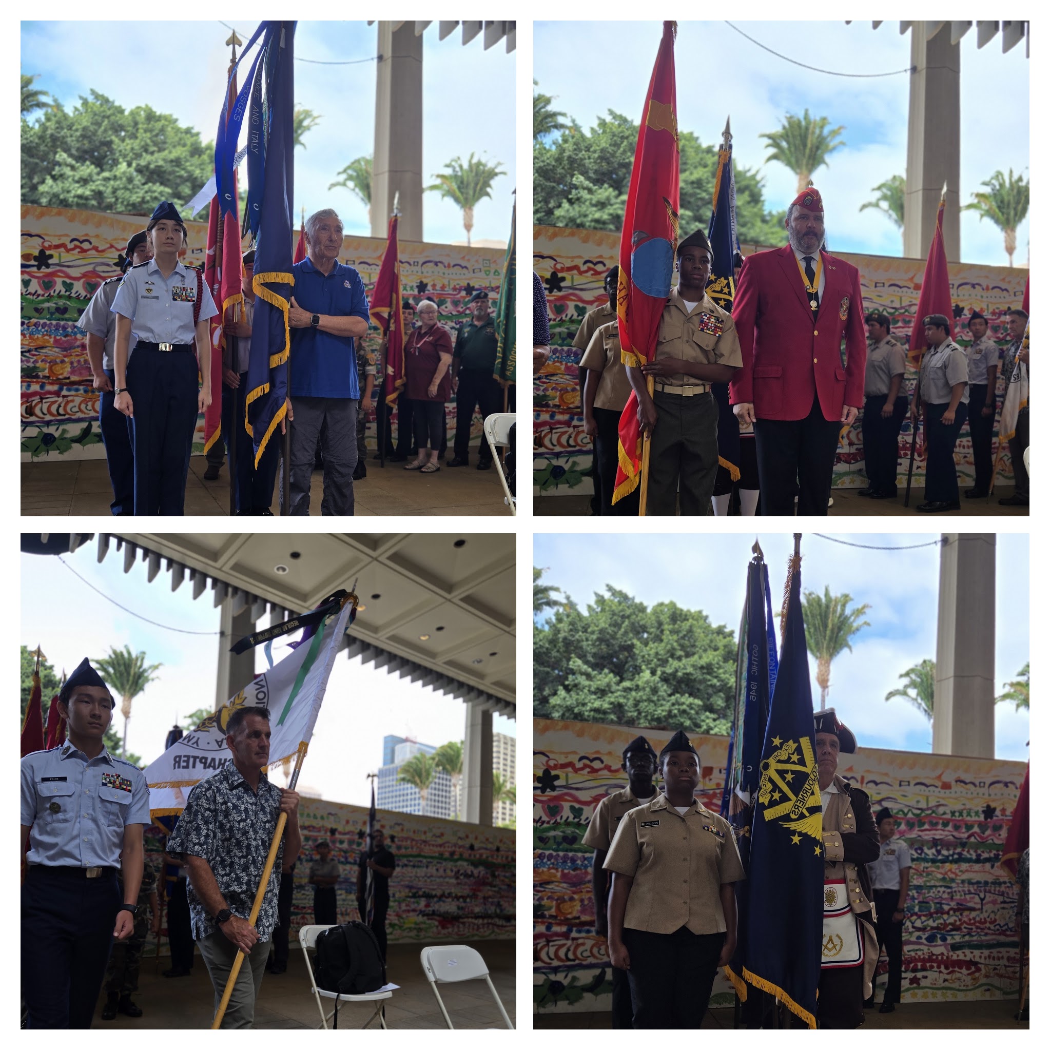 of flags from twenty-six Veterans, Civic, Genealogical, and Military Professional organizations. BG Walter Ross Jr., Director, Joint Staff, Hawai‘i National Guard,