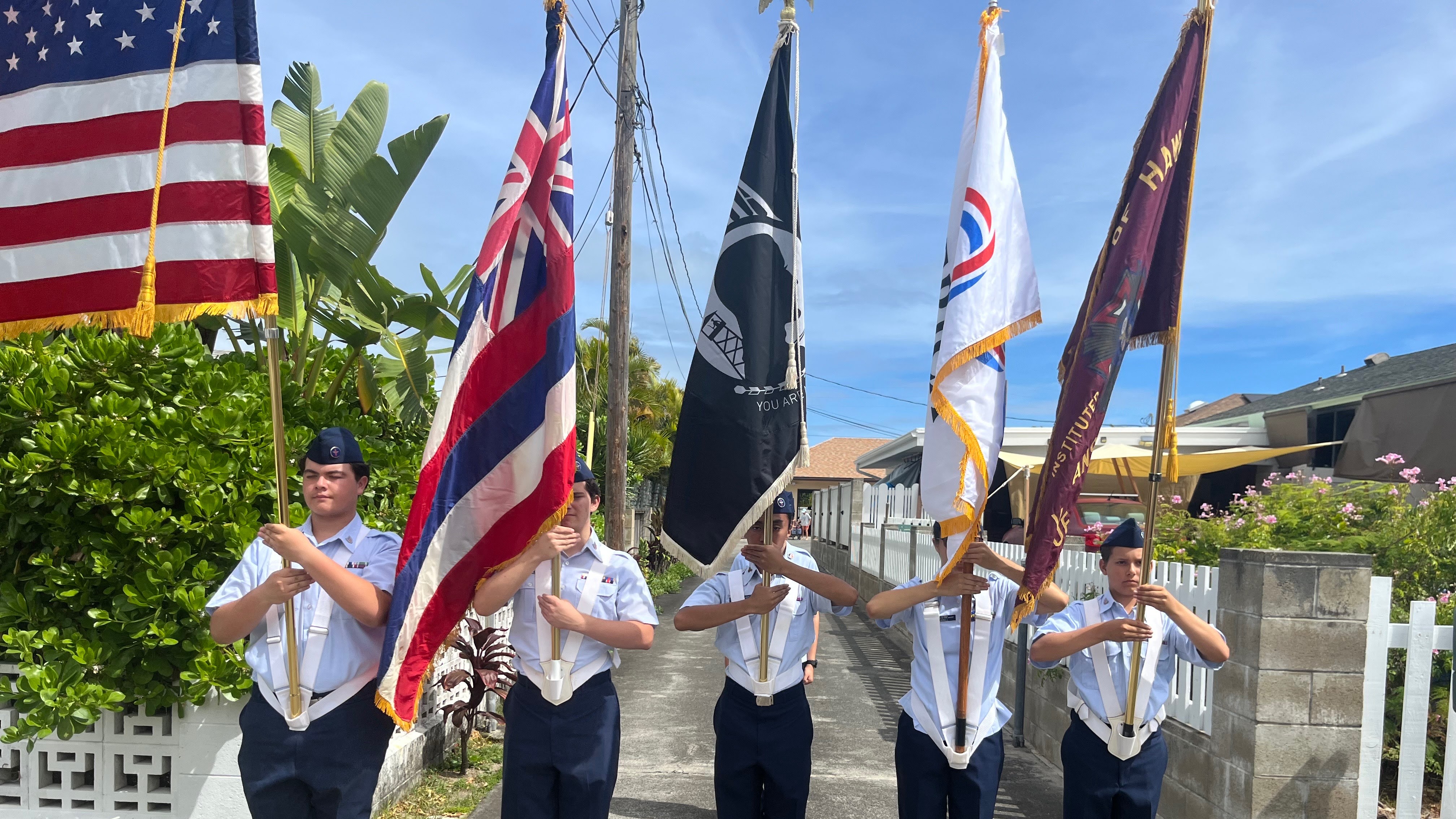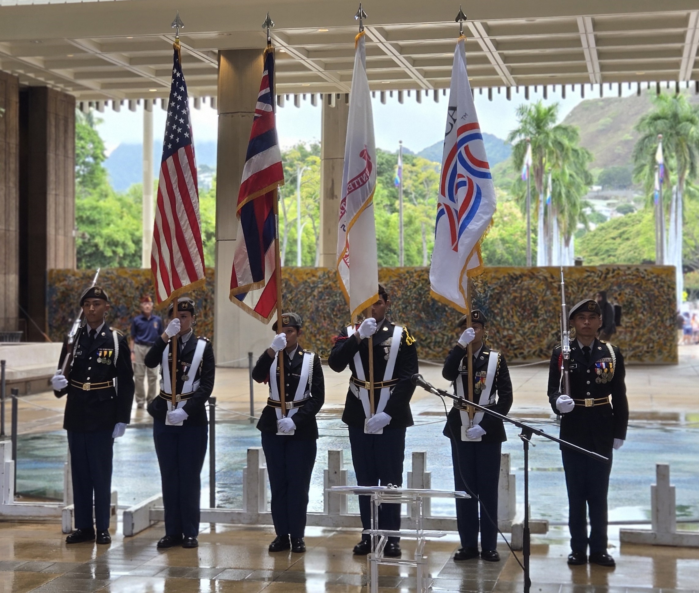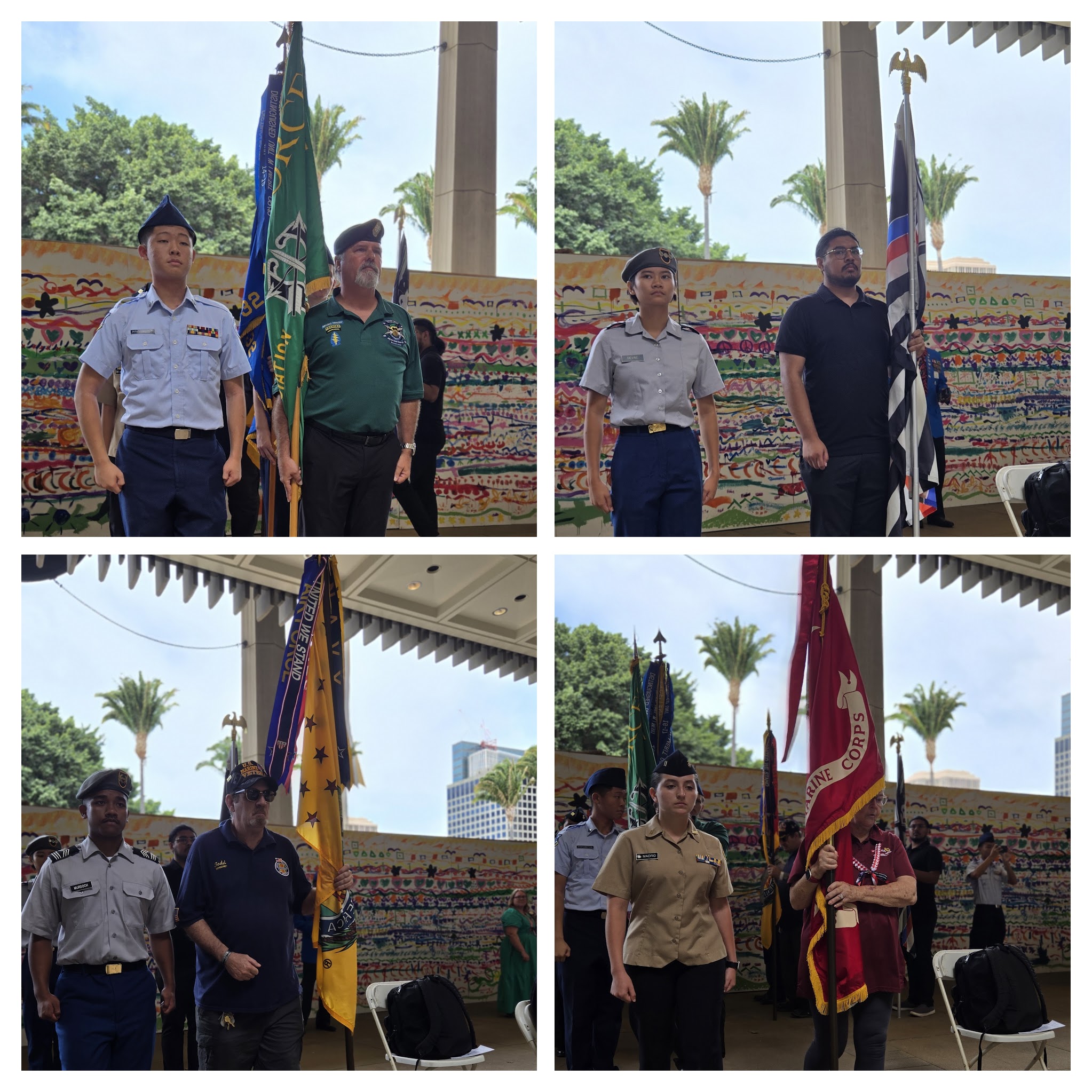- The Waipahu High School JROTC Color Guard posted the colors.