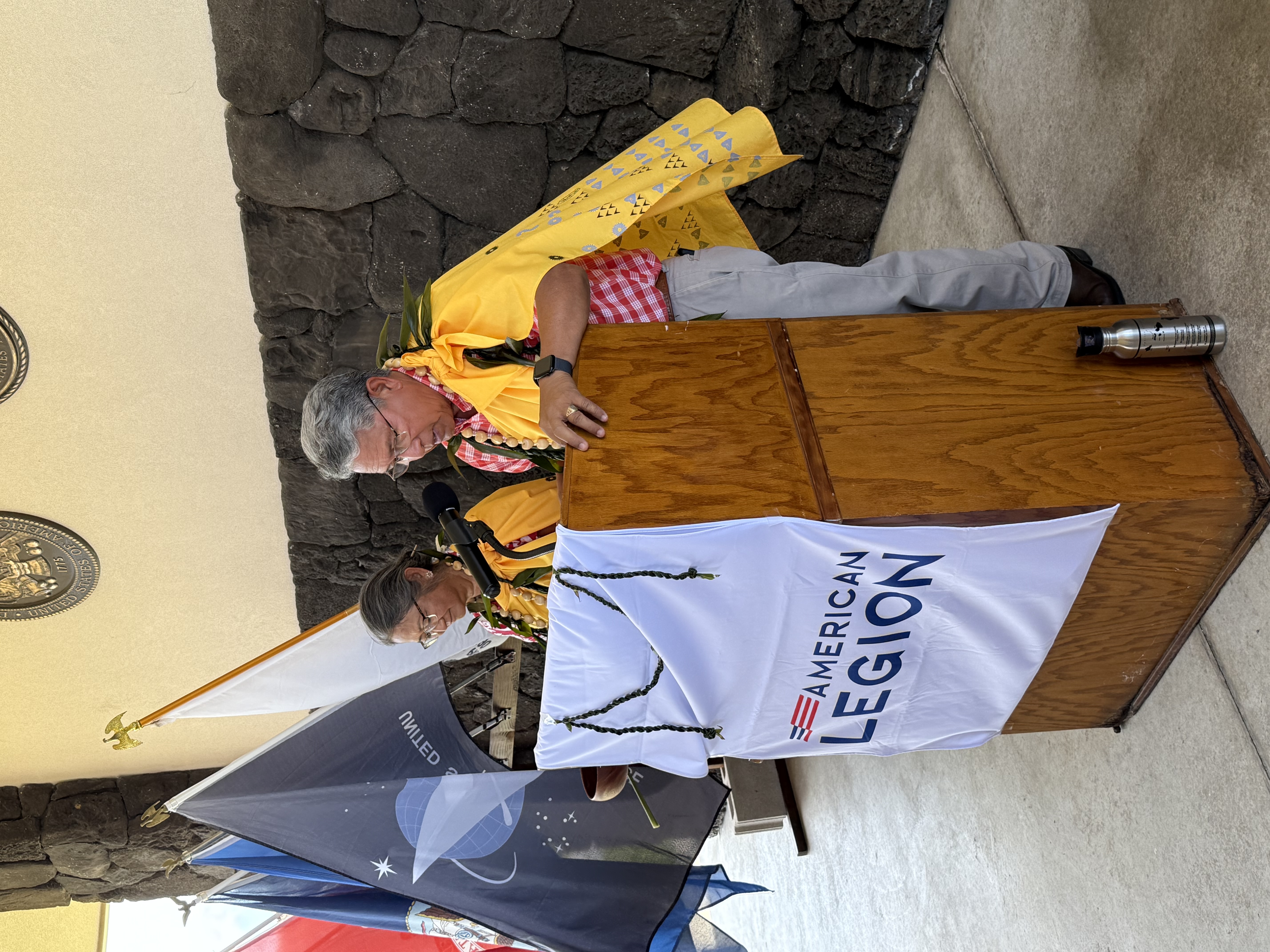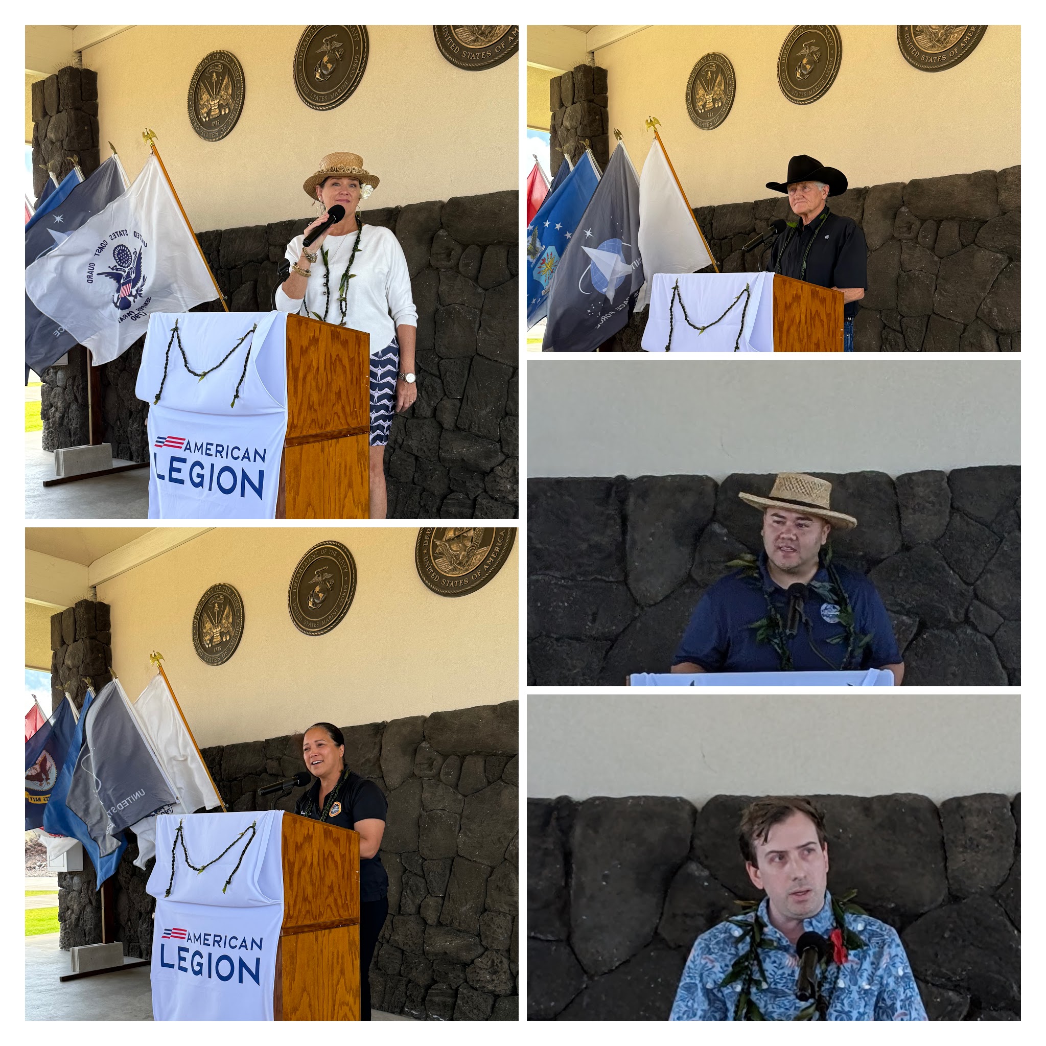 Representatives from State and Local Government provided respectful comments honoring the tradition of Memorial Day: State Senator Tim Richards; Hawai‘i County Council Members Holeka Inaba, Rebecca Villegas, and James Hustace; and Melissa Samura, Deputy Director, Hawai‘i County Parks and Recreation.