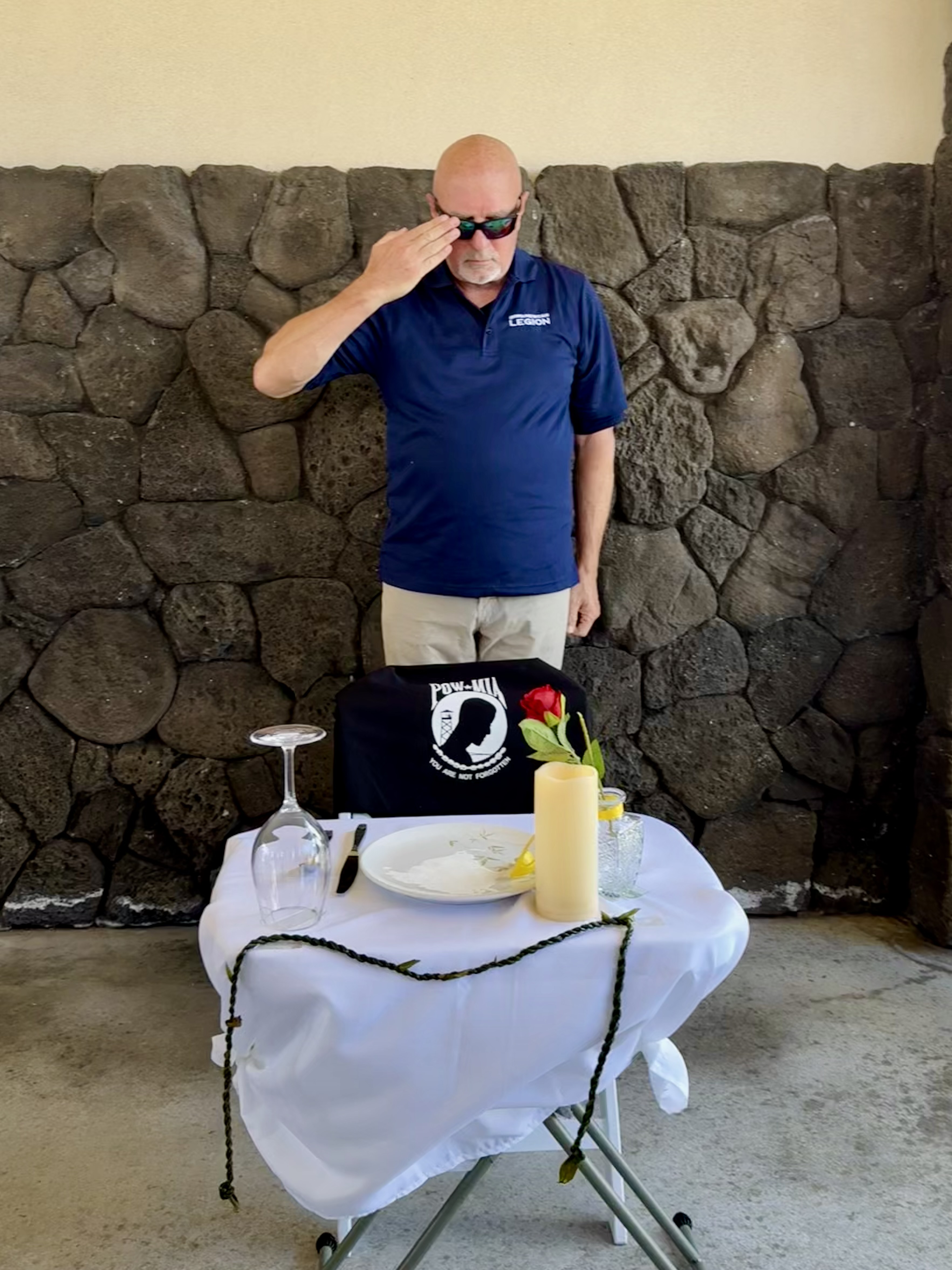 Tom Wojszynski, Vice Commander, The American Legion Post #4, renders honors at the POW/MIA table.