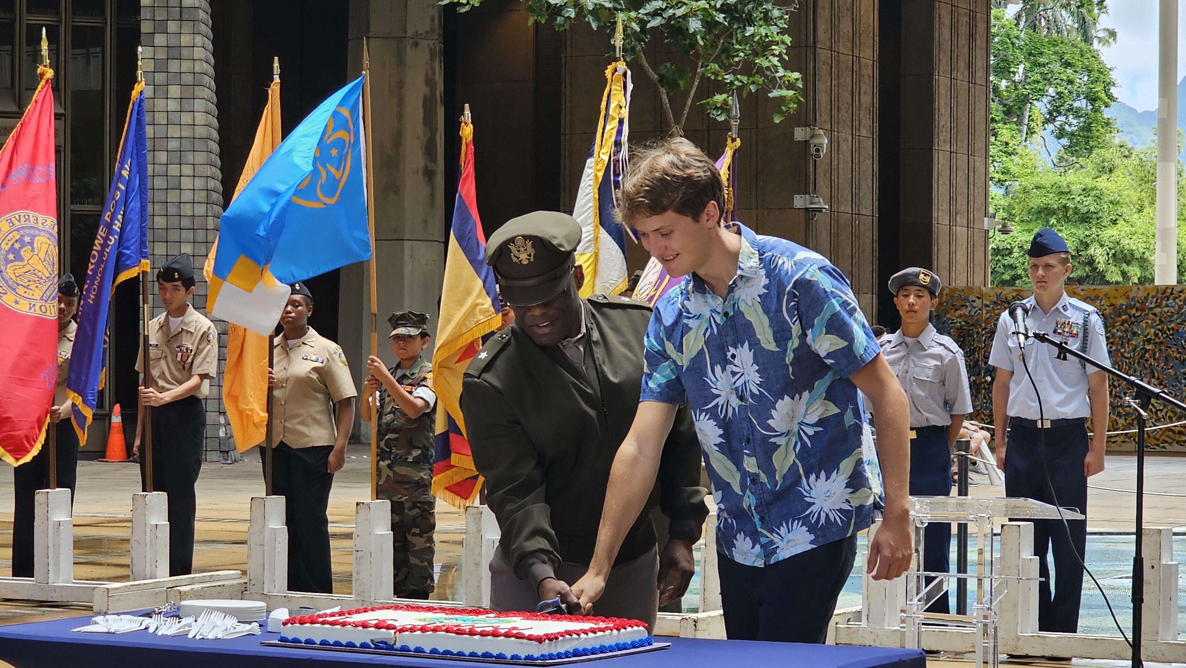 Members of the Waipahu High School Junior Reserve Officer Training Corps (JROTC) provided the Color Guard at the Hawaii State opening ceremony for the Hawaii 250th Commemoration, on the 250th Anniversary of the first battle of the Revolutionary War at Lexington and Concord.
